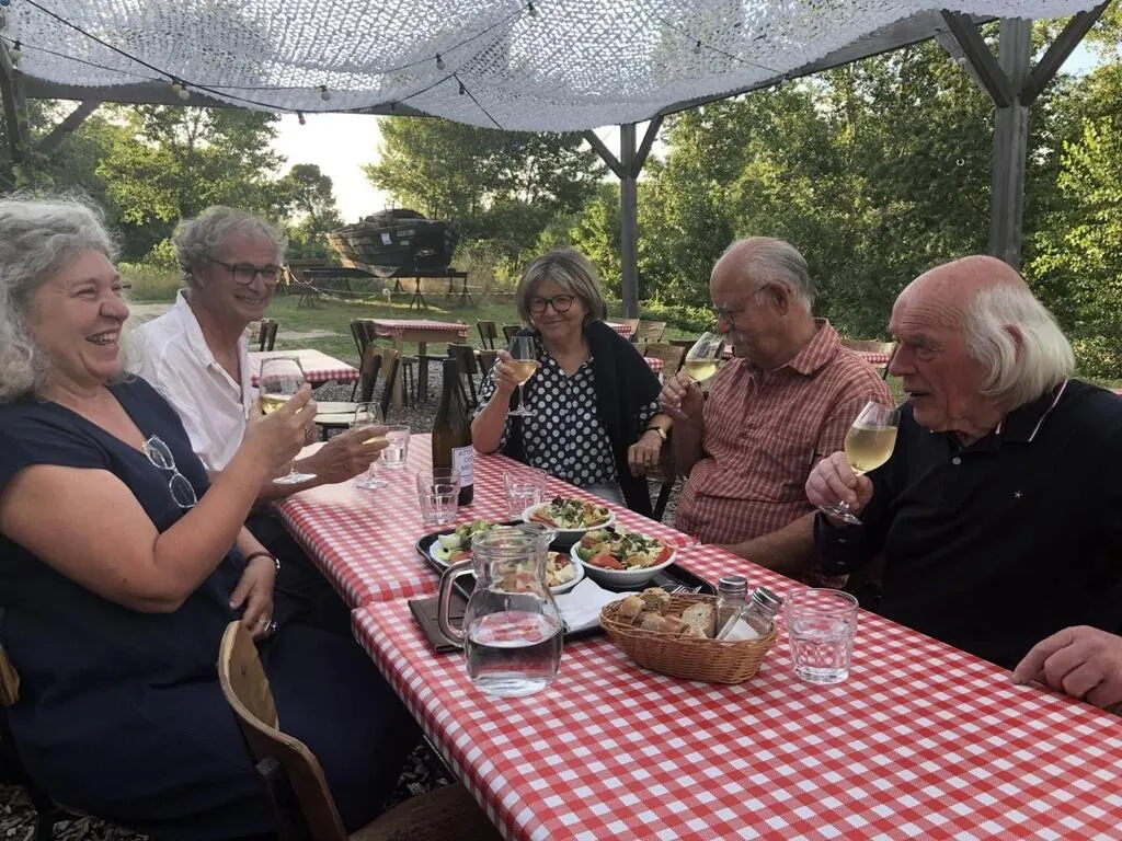 Cunault, mercredi 12 juillet. La guinguette du Hangar a ouvert samedi 1er juillet. Depuis, les amoureux des bords de Loire et de bonne chère défilent pour passer un moment au calme. © CO – Yvan GEORGET
