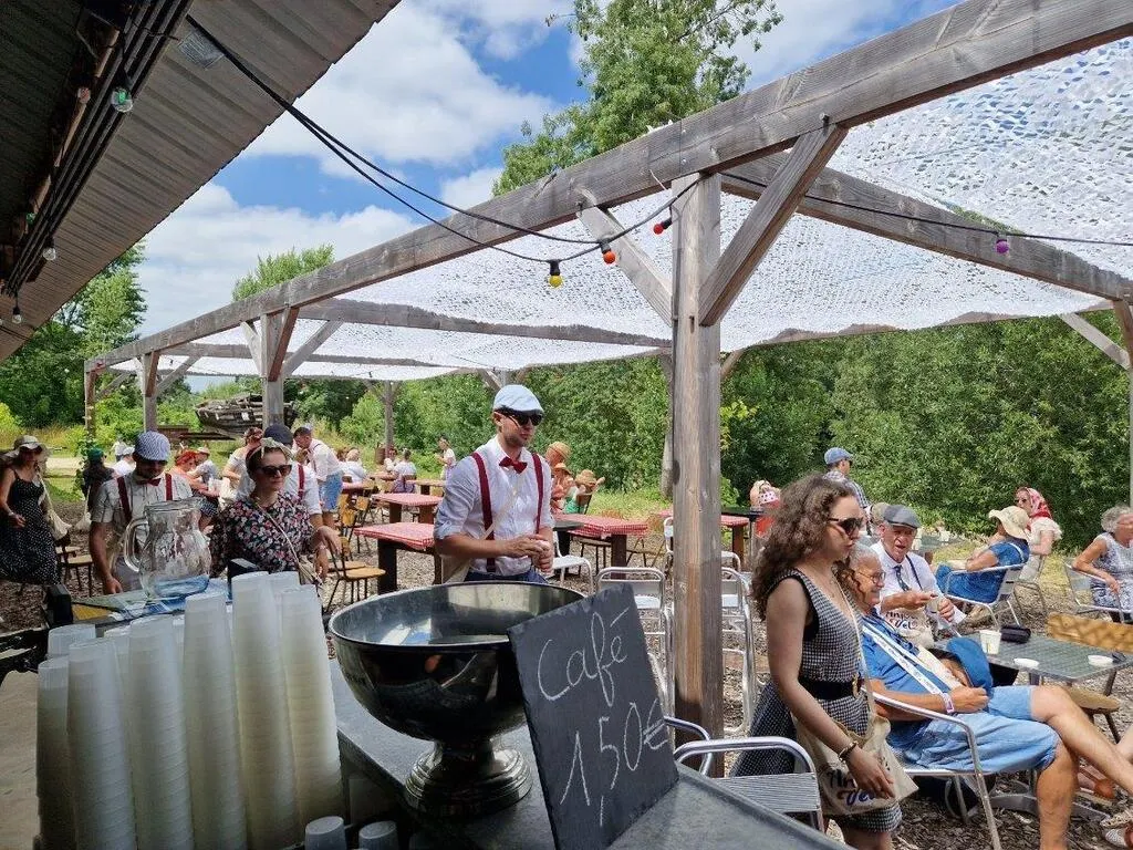 Nappes vichy rouge et blanc, pergolas, verdure, guirlandes d’ampoules colorées, concerts… Un immense hangar en bois qui a donné son nom au lieu, et au fond du terrain, le bateau traditionnel Val-de-Vienne, un chaland qui attend paisiblement que l’association Jeanne-Camille du Thoureil lui ...