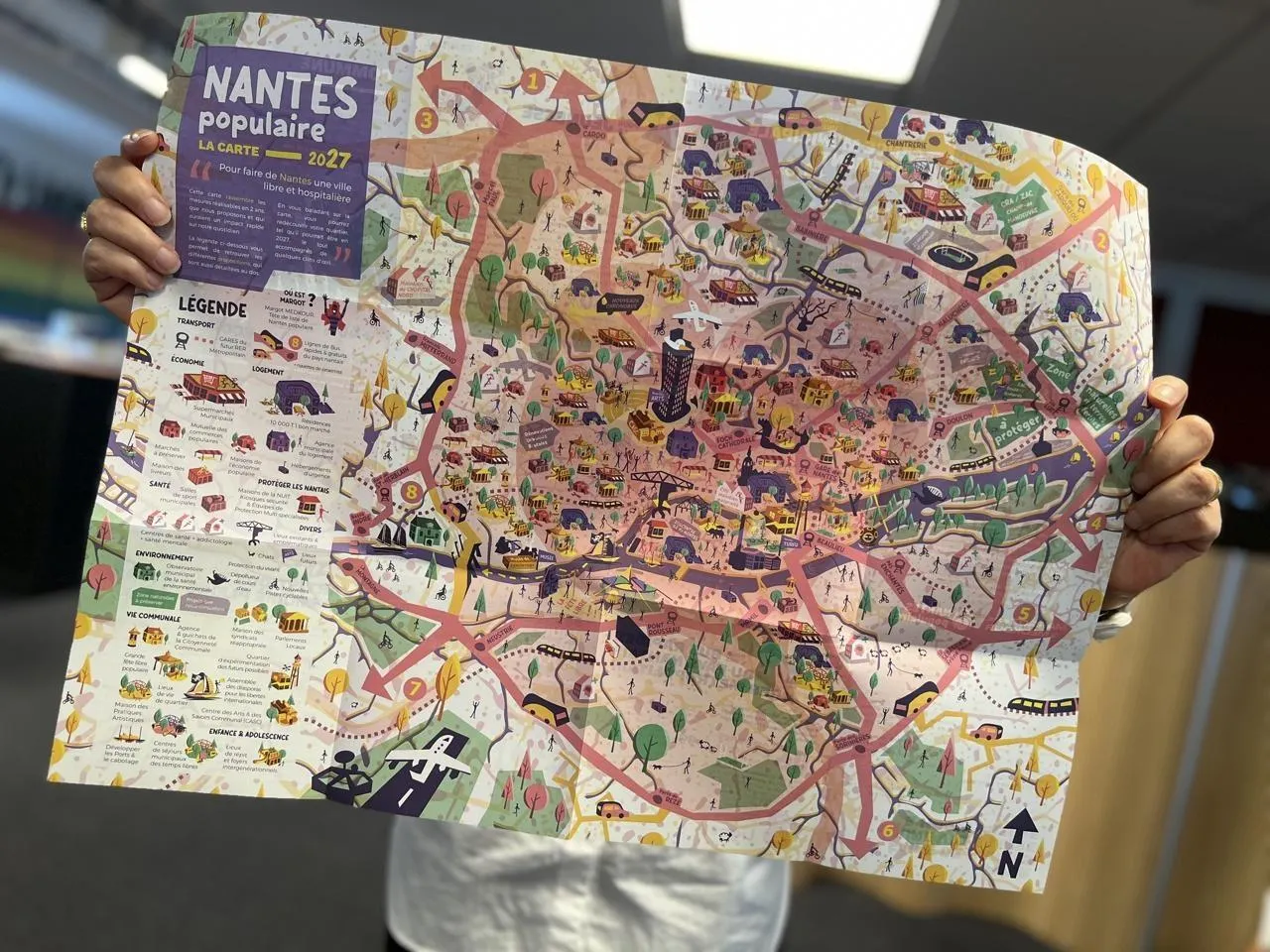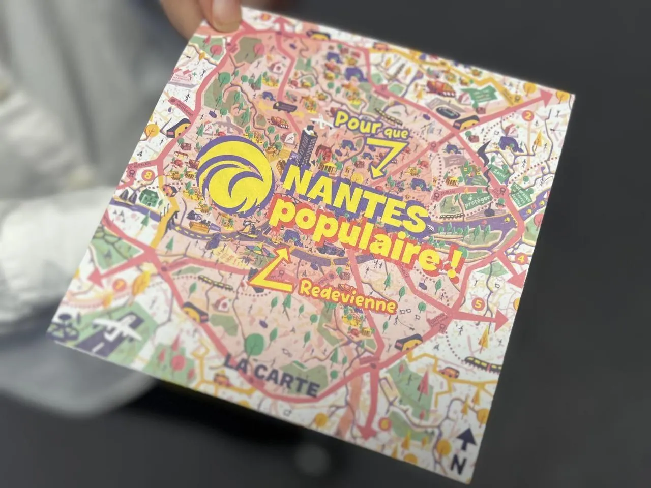 Les premiers programmes des candidats aux municipales à Nantes sont tombés dans les boîtes aux lettres. Petit livret et pages colorées, mais sans fantaisie, pour la maire PS sortante Johanna Rolland, papier glacé, format magazine et typo conventionnelle pour Foulques Chombart de Lauwe, le candidat LR de la droite et du centre. La palme de l’originalité revient à Margot Medkour, candidate de Nantes populaire (divers gauche), qui s’essaie à la carte dépliable. C’est punchy, parfois un peu fouillis, mais ludique. On peut y retrouver ses projets mais aussi ceux qu’elle arrêterait, barrés d’une croix rouge. Inspiré de la fameuse BD « Où est Charlie ? », il est aussi proposé de chercher sur la carte « Où est Margot ? ». Indice : pas très loin de la mairie.