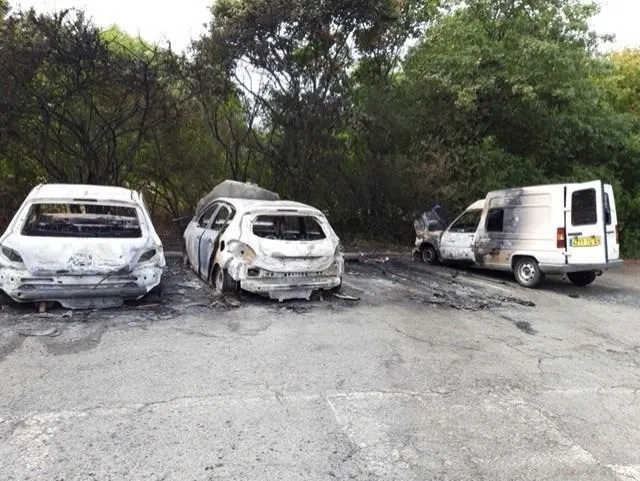 Trois des quatre véhicules incendiés. © Ouest-France