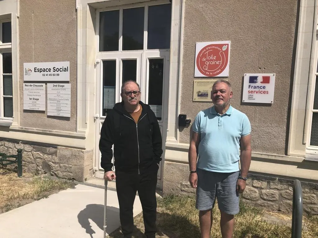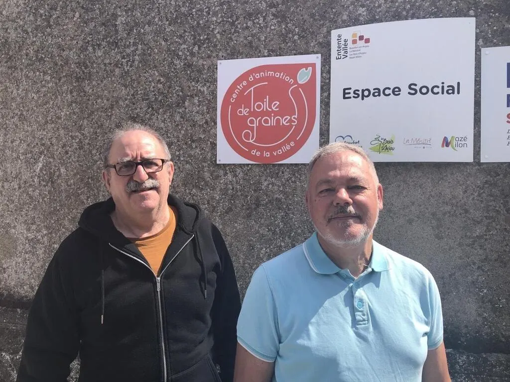 Beaufort-en-Anjou, le 19 mai 2025. Yann Le Roux et Dominique Rivaux, deux des trois coprésidents du centre d’animations de la Vallée Toile de graines, témoignent de l’incertitude qui pèse sur l’avenir du centre. © CO – Christophe RICCI