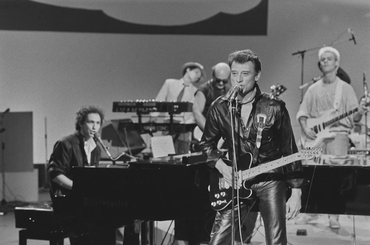 Sur le plateau de l’émission "Le Grand échiquier", Johnny Hallyday accompagné au piano par Michel Berger. Une chanson inédite, « C’est l’amour que j’attendais », des deux légendes disparues de la chanson française, a été dévoilée ce jeudi 4 décembre 2025 par Universal. © Ina via AFP