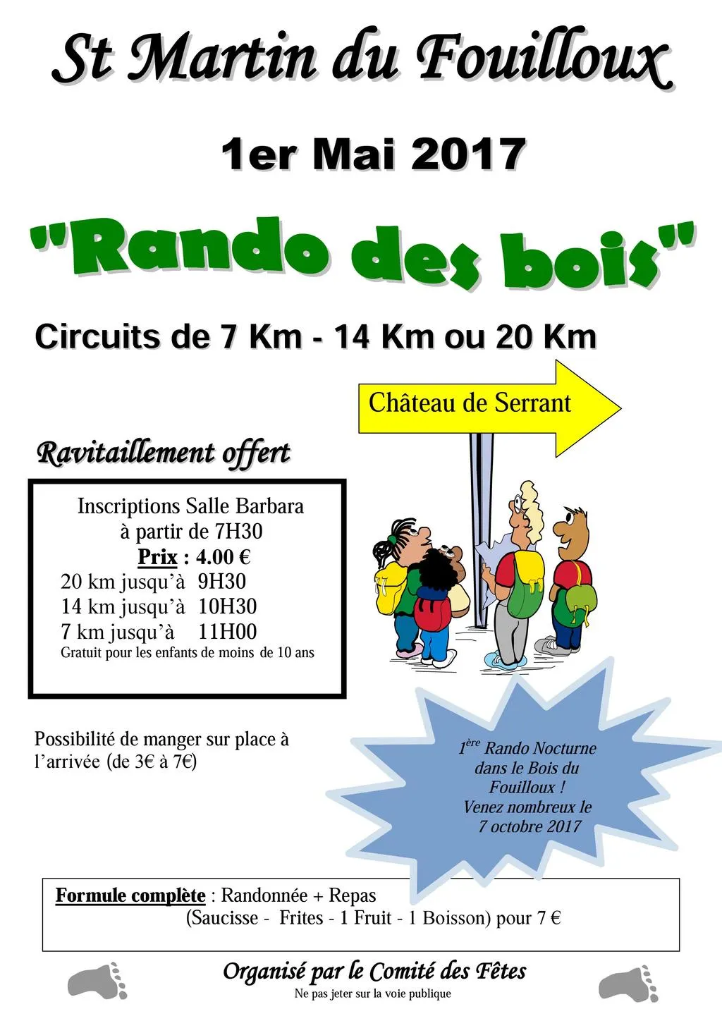 Randonnée pédestre ouverte à tous, avec des parcours de 7km, 14km ou 20km.
