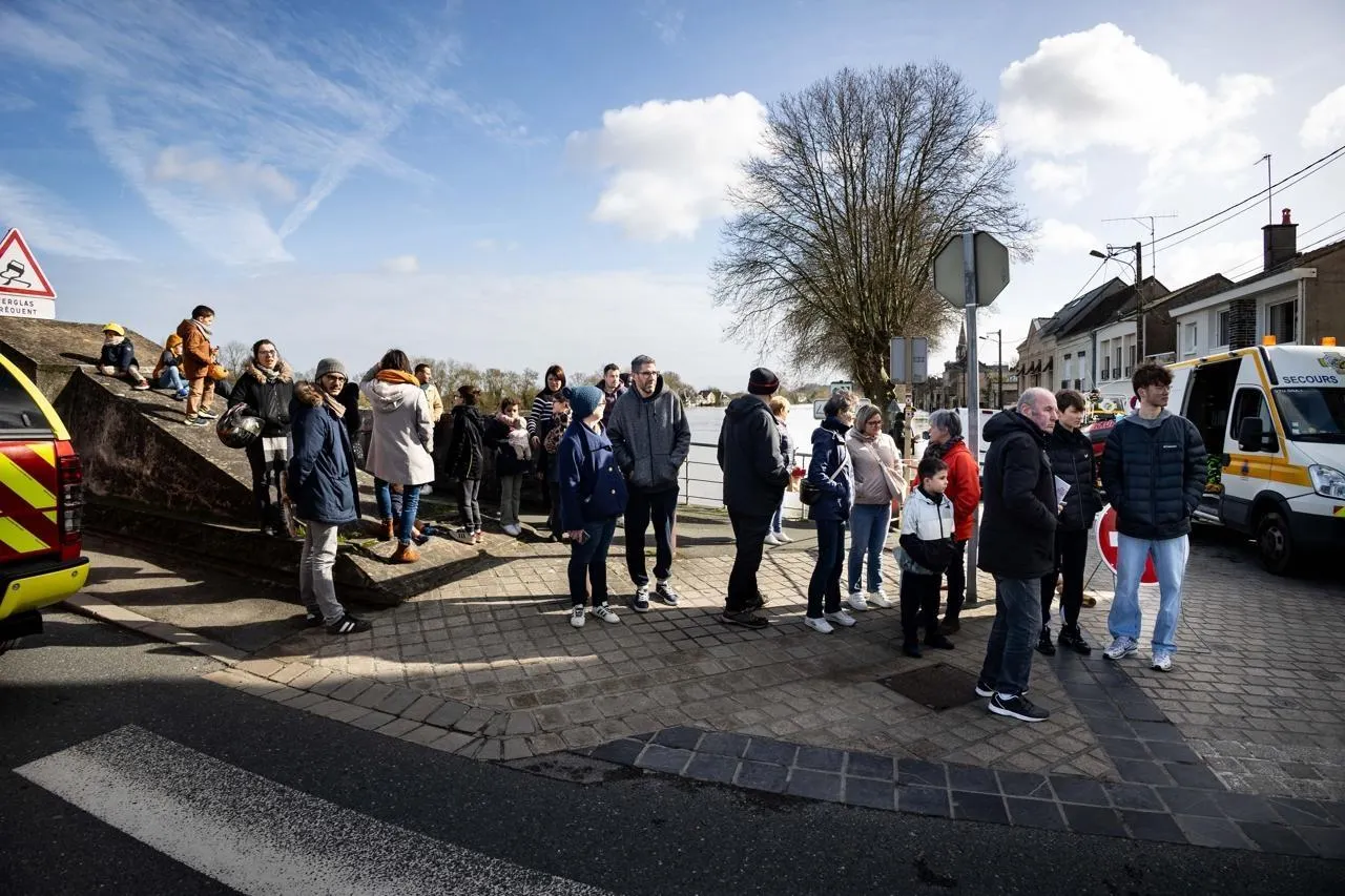 Chalonnes-sur-Loire, le vendredi 20 février 2026. Le spectacle de la Loire en crue et le ballet des sauveteurs attirent une foule de curieux. Régine Lemarchand