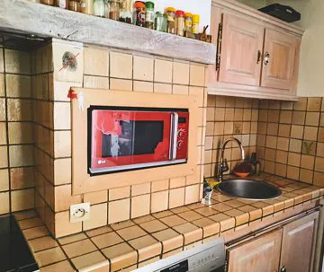 2. cuisine d’origine entièrement faïencée, datée et non ergonomique