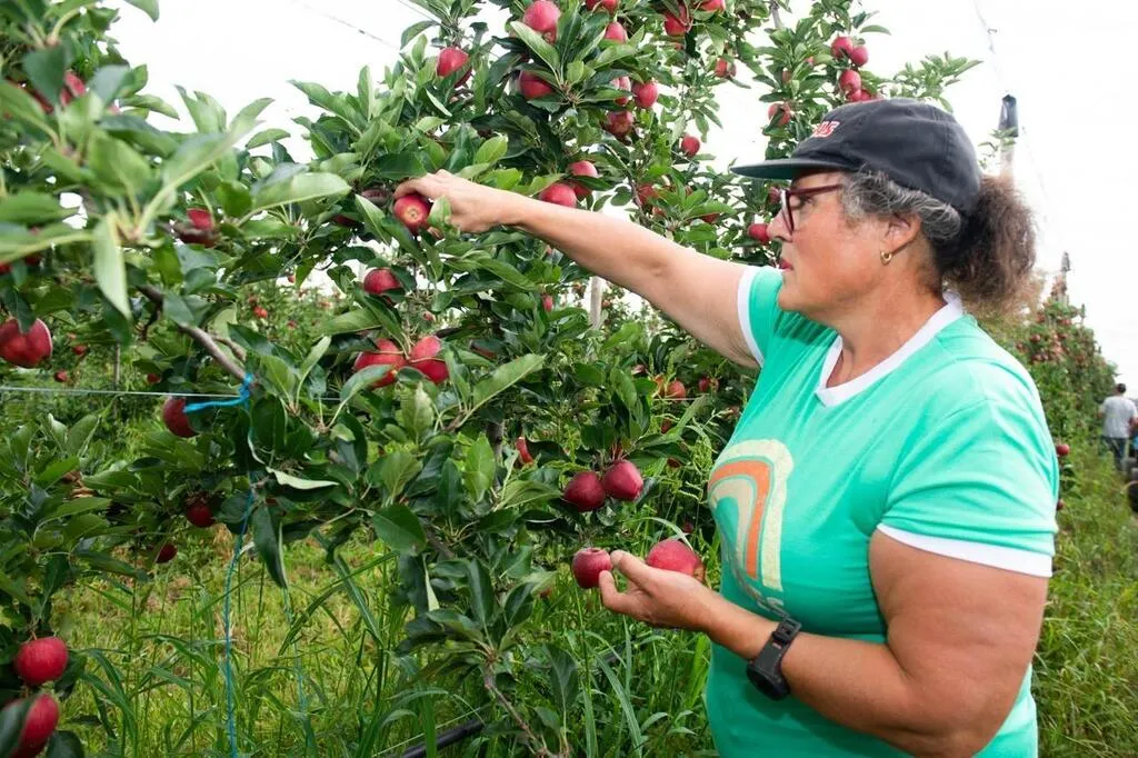 Jean-Jacques Pécot, arboriculteur à Saint-Mélaine-sur-Aubance (Maine-et-Loire), a démarré la cueillette des pommes gala ce lundi. © Émile Kemmel, Ouest-France