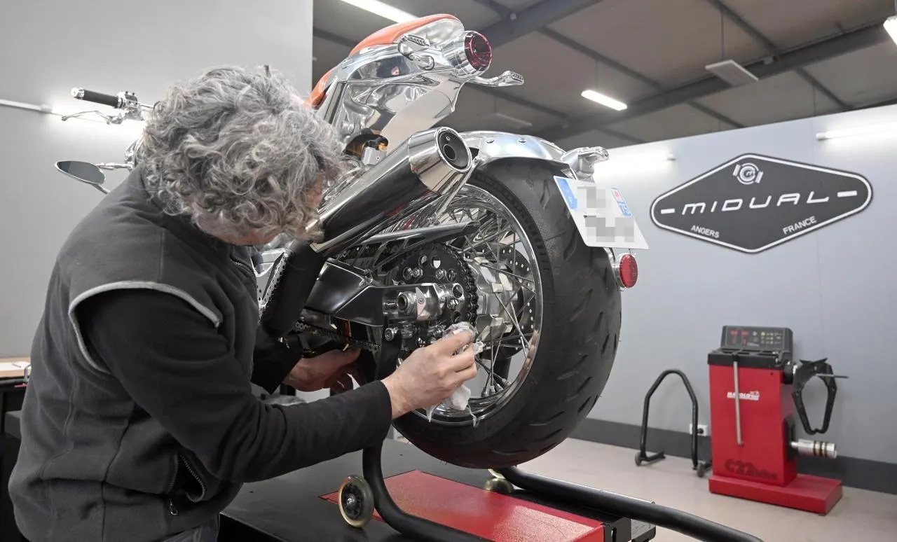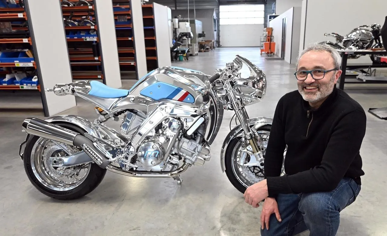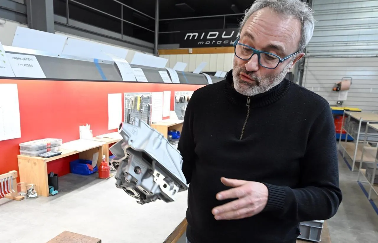 Olivier Midy a consacré trente années à concevoir et réaliser une moto entièrement originale ainsi que l’usine qui la fabrique pièce par pièce près d’Angers. © Jérôme Fouquet, Ouest-France