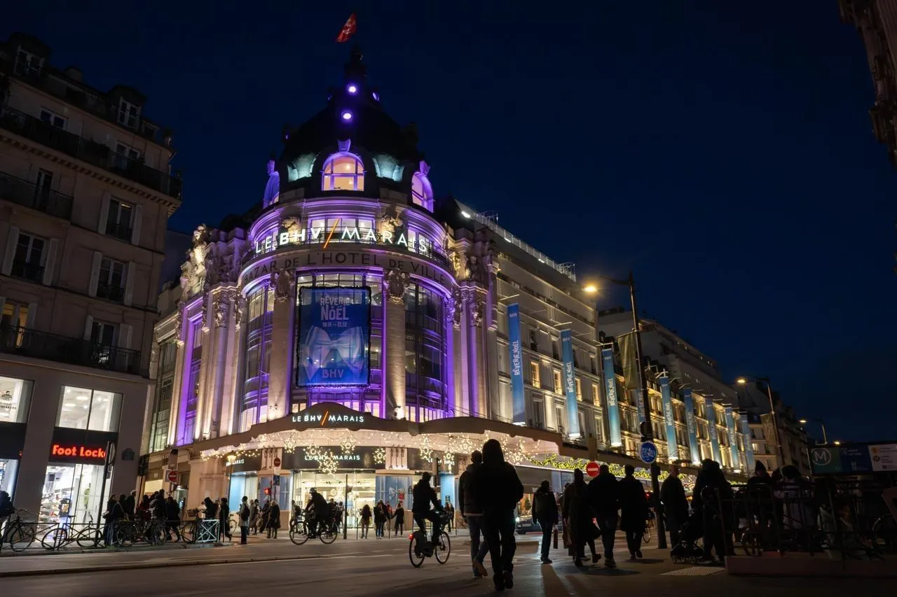 photo  sur la façade du bhv à paris, une « rêverie de noël » est promise aux clients qui s’y aventureraient. cette promesse remplace une photo géante qui a marqué les esprits début novembre : le patron du bhv aux côtés du dirigeant de shein.  ©  stéphane geufroi / ouest-france 3