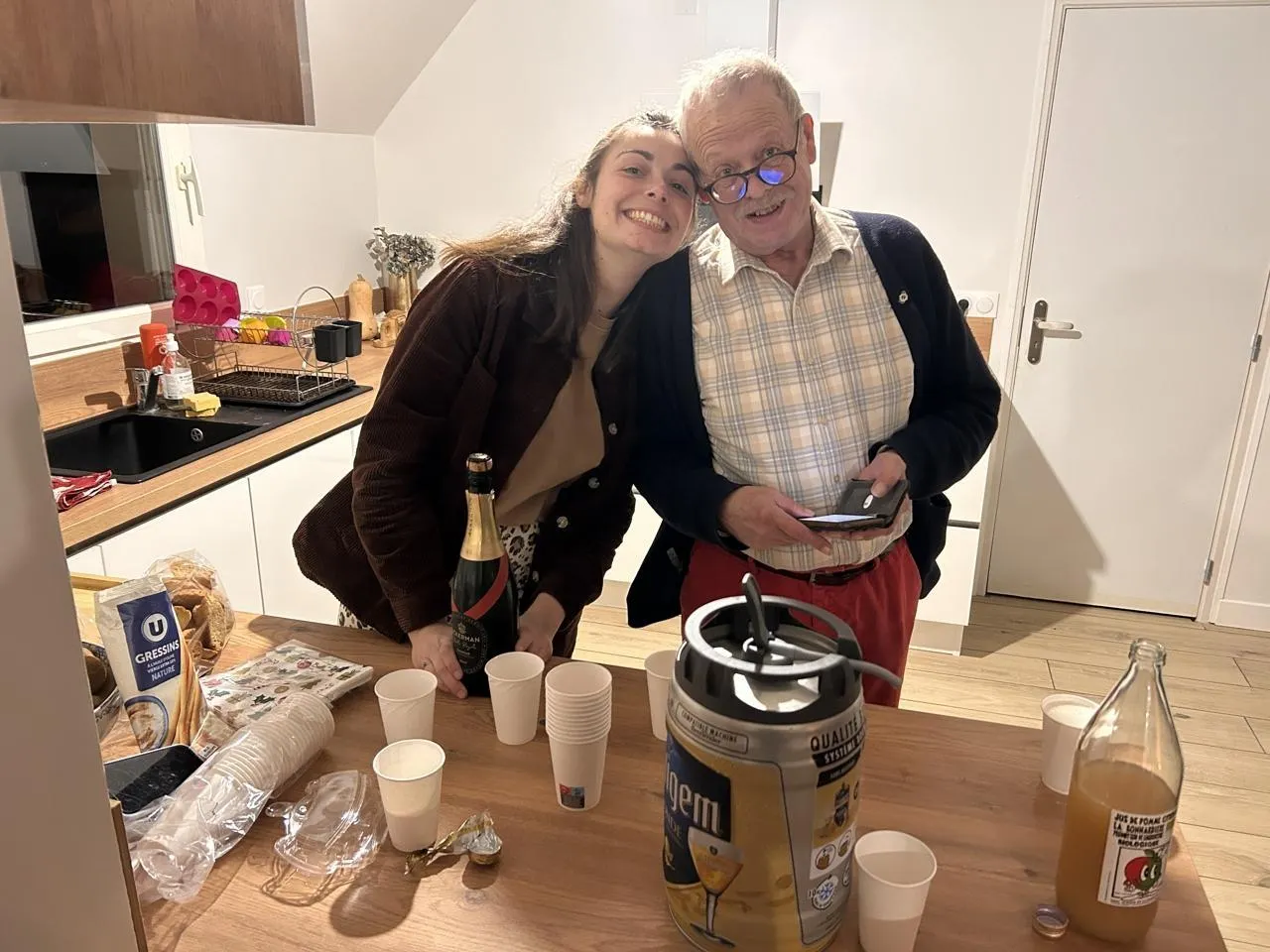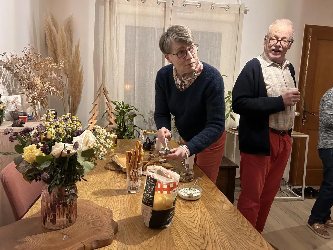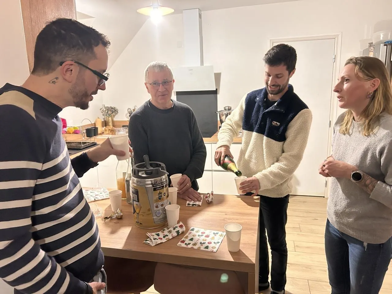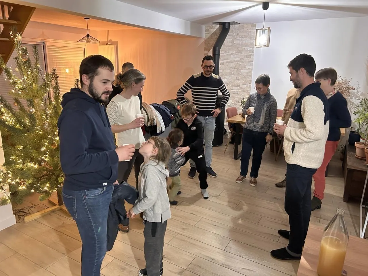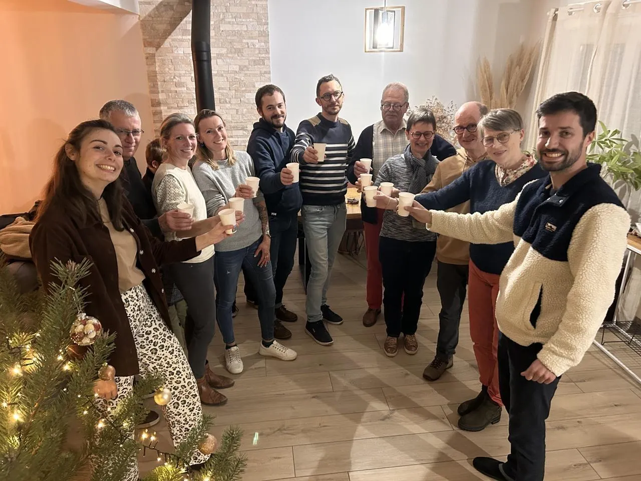 Blou, mardi 10 décembre. Avec les Fenêtres de l’Avent, les apéros multigénérationnels se succèdent tous les soirs entre habitants du village. © CO – Yvan GEORGET
