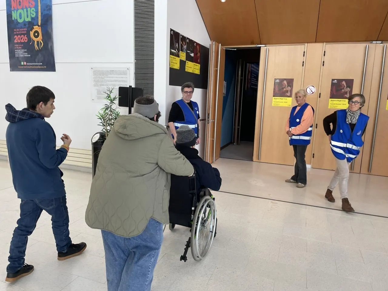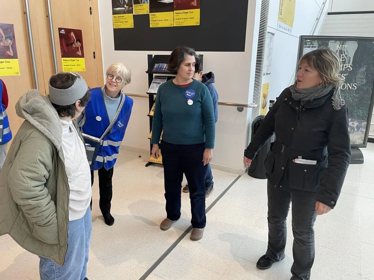 Ghislaine et les deux Christophe, porteurs d’un handicap psychique, accueillis par les bénévoles, vont voir le film Les rêveurs d’Isabelle Carré. © Ouest-France