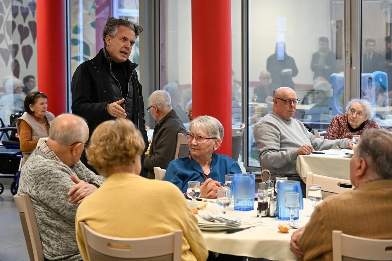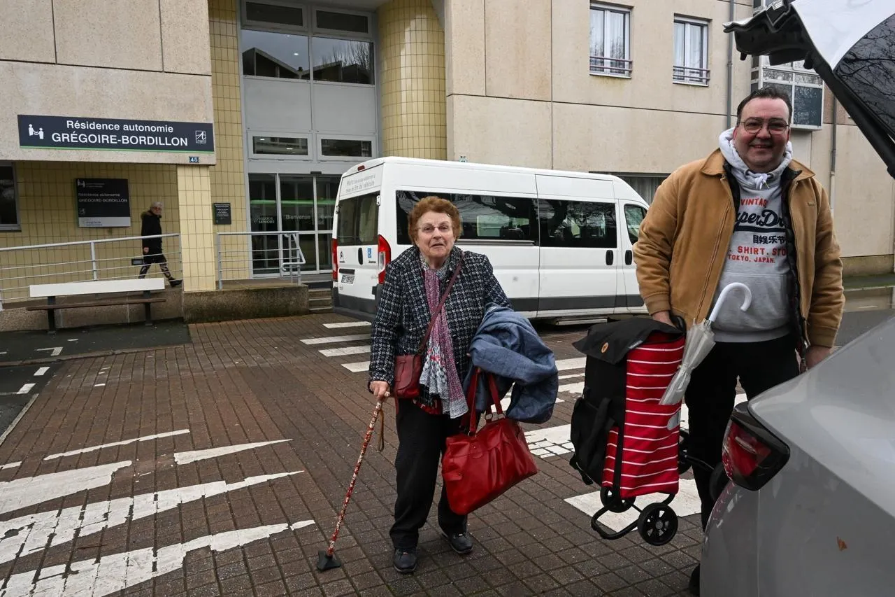 Angers, place Grégoire-Bordillon, le 19 février 2026. Une cinquantaine de résidants vont rejoindre leur famille, comme ici Bernadette de Sevin. © CO – Laurent Combet