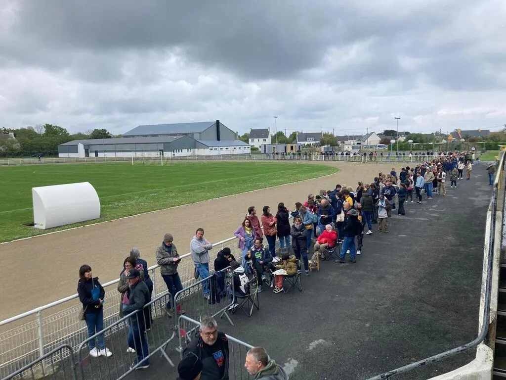 Il y avait foule au stade de Penmarc’h (Finistère) pour acheter des billets pour le concert de Manu Chao le 15 juin. L’équipe de God save The Kouing ont accompagné les fans de 13 h à 18 h avant la vente des billets sur internet. © Ouest-France