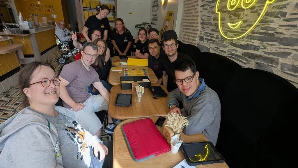 En France, une trentaine de Cafés joyeux emploient 60 % de personnes en situation de handicap. Ouvert depuis un an, l’établissement d’Angers forme chaque mercredi matin son personnel. Dans une ambiance très bienveillante.
