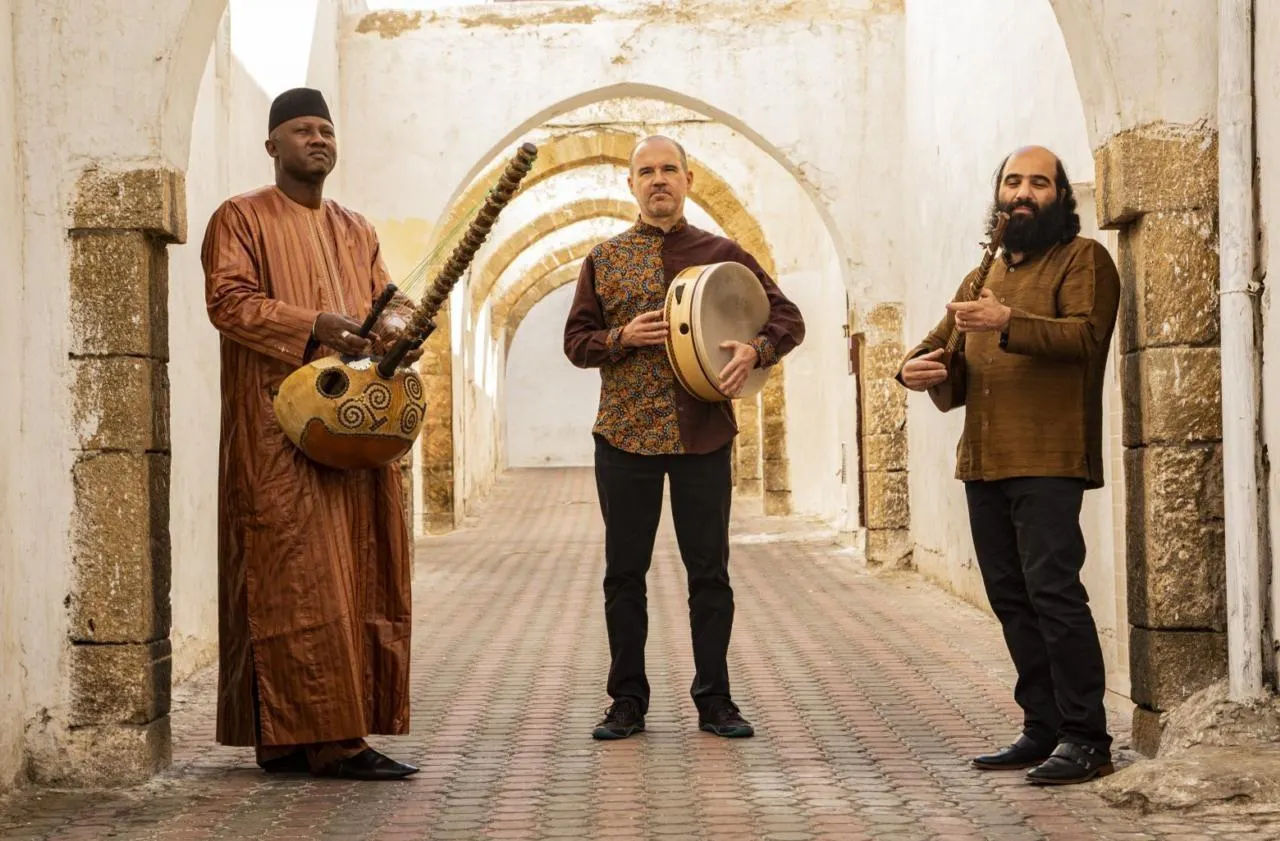 Ablaye Cissoko joue de la kora, une forme de harpe à 21 cordes qui vient d’Afrique de l’Ouest ; Kiya Tabassian du sétar, un instrument persan à trois ou quatre cordes pincées ; et Patrick Graham des percussions.