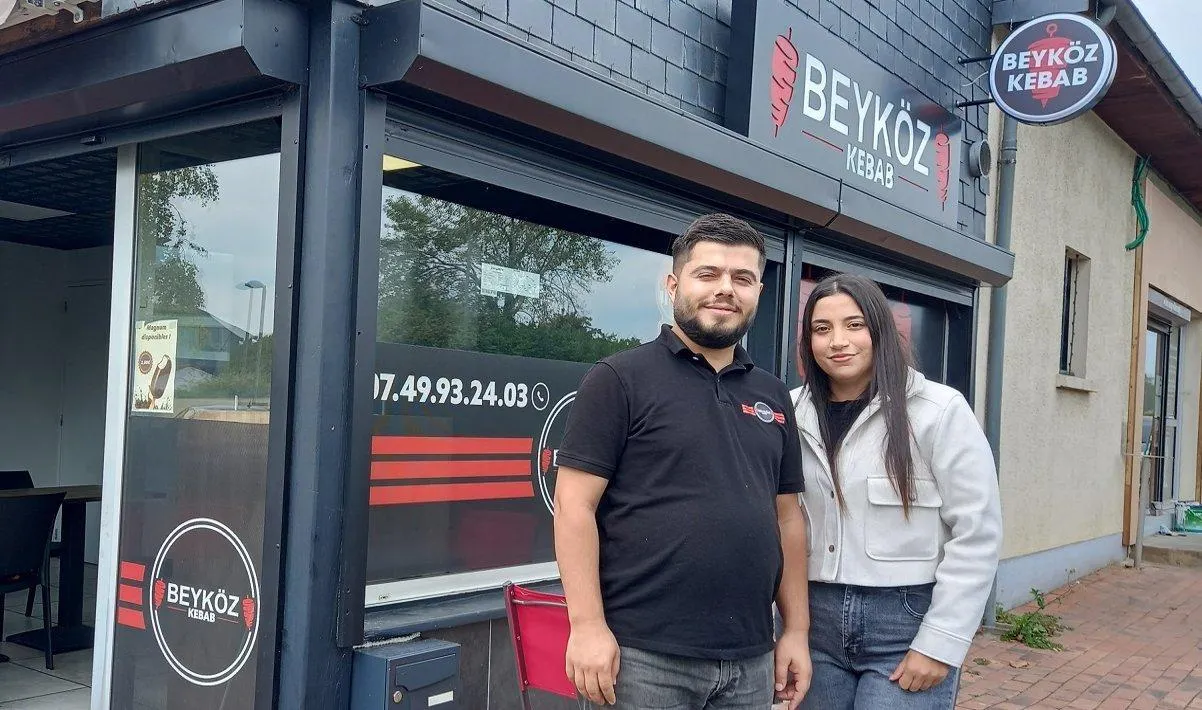 Mehmet Karadag, ici avec son épouse Tugba, devant le kebab qu’il vient de reprendre au centre commercial Jean-Jaurès. © Ouest-France