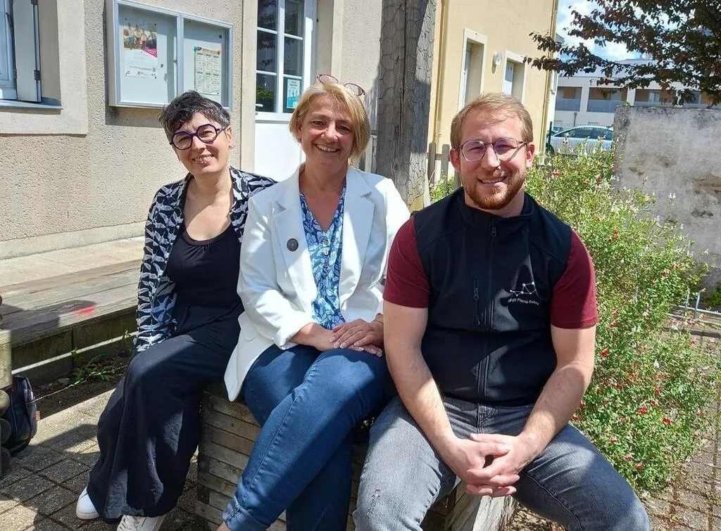 Devant l’espace ados à Saint-Barthélemy-d’Anjou (Maine-et-Loire), de gauche à droite Adeline Roi, directrice adjointe du Village Pierre-Rabhi, Isabelle Raimbault, adjointe aux solidarités et à l’action sociale et Geoffrey Flécheux, animateur jeunesse qui, avec ses collègues Fabien Pérochon et Léa Geindreau, (absents), a construit le programme de l’été. © Ouest-France