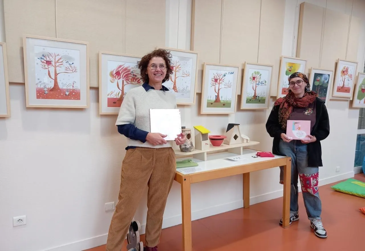Des doudous pris en photo en vacances par les usagers de la médiathèque, et des planches réalisées par l’illustratrice Laetitia Le Saux, tirées de son livre Le nid : actuellement, deux expositions ornent les murs de la Ranloue. Jusqu’au 16 octobre pour la première, jusqu’au 5 novembre pour la deuxième « À l’occasion de l’exposition sur Le nid, le Bibliopôle offre à tous les parents d’enfants nés ou adoptés en 2025 ou 2026 un exemplaire du livre », souligne Aurélie Dernoncourt, directrice de la médiathèque. Avant sa clôture, le 5 novembre, les médiathécaires offriront, eux, aux enfants à partir de 4 ans, la lecture des histoires délicatement mises en images par l’illustratrice.