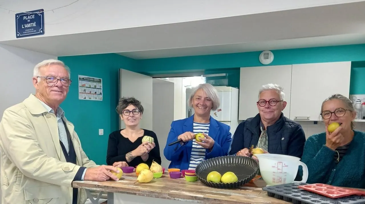 Le maire Dominique Bréjeon, la directrice adjointe du village Pierre-Rabhi Adeline Roi, l’adjointe à l’action sociale Isabelle Raimbault, l’adjointe à l’enfance et l’éducation Christine Huu et la directrice du relais petite enfance Catherine Beuchard, tous engagés dans la Semaine du goût. © Ouest-France
