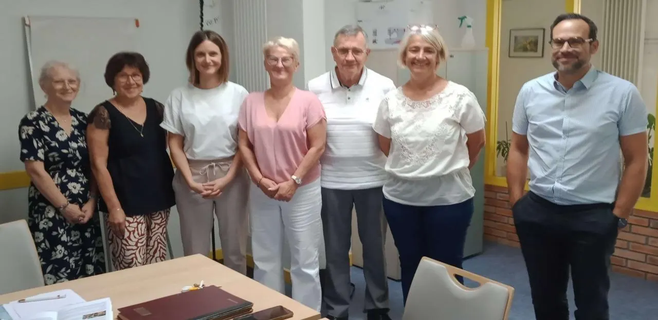 Morgane Beuille, 3e à partir de la gauche, est entourée de membres de deux associations, d’Isabelle Raimbault adjointe aux solidarités et à l’action sociale et de Mickaël Crémont directeur du VPR. © CO
