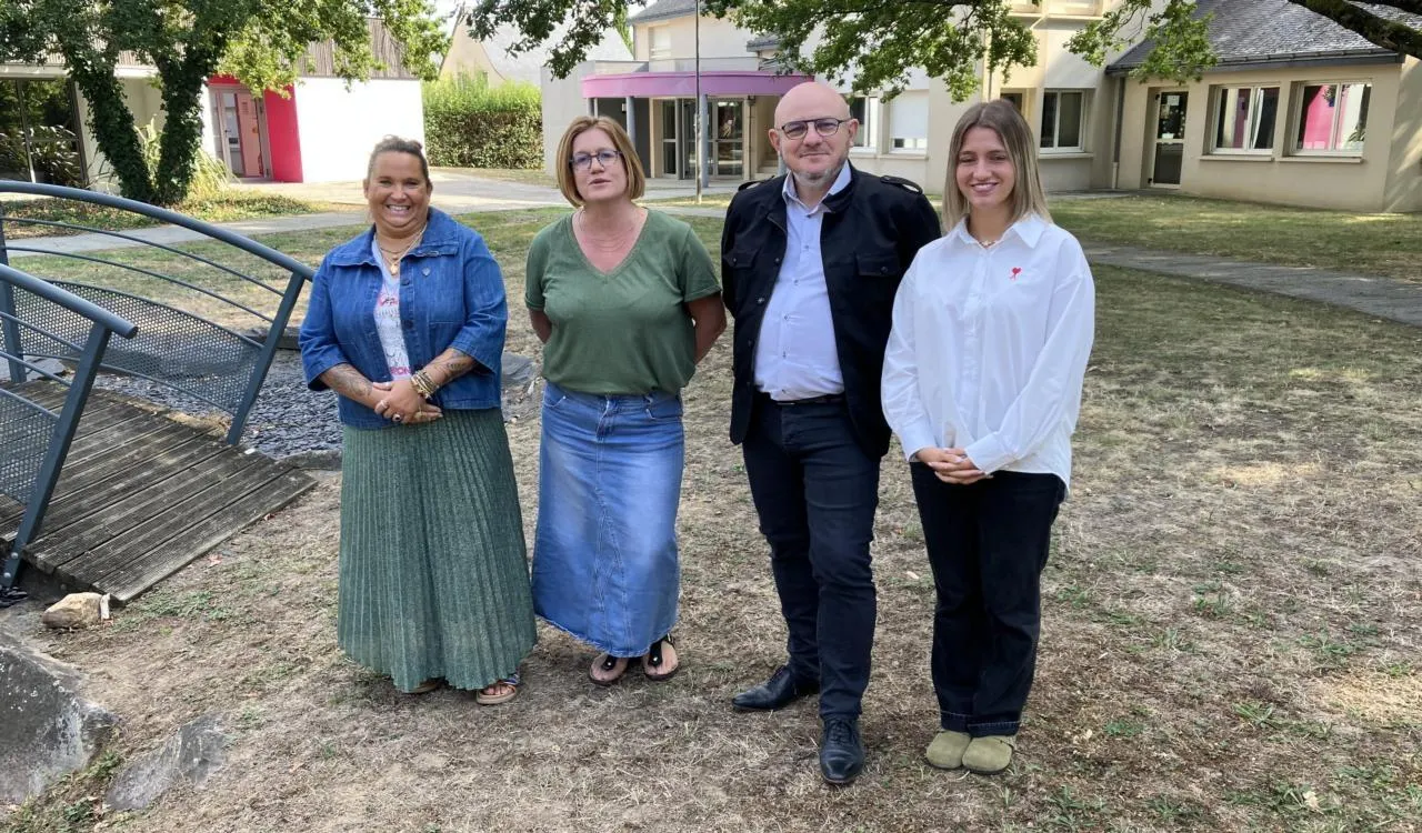 Laure Pichon-Massiot, Séverine Maussion, Jérôme Hurel et Ludmilla Delaunay dans le parc de la MFR Le Cèdre. © CO.