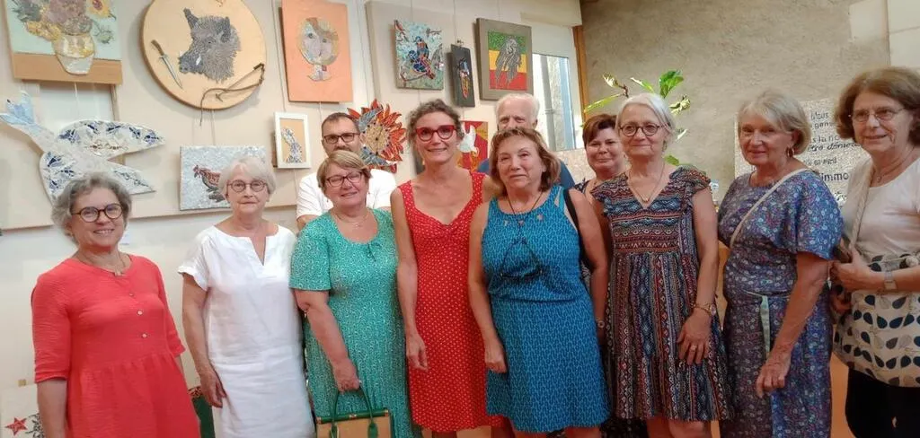 Les travaux des élèves de l’année écoulée sont exposés. Si chacun réalise des œuvres au gré de son imagination, Marie propose aussi de participer à une œuvre collective qui sera présentée aux Rencontres internationales de la mosaïque de Chartres, programmées tous les deux ans :  L’an dernier, nous avons remporté un prix pour la première fois en huit ans, le 3e prix Picassiette. Le thème était Autour du bleu, nous avons travaillé autour de la chanson de Christophe « Les mots bleus ». Pour 2024, le thème est Urbaine ».