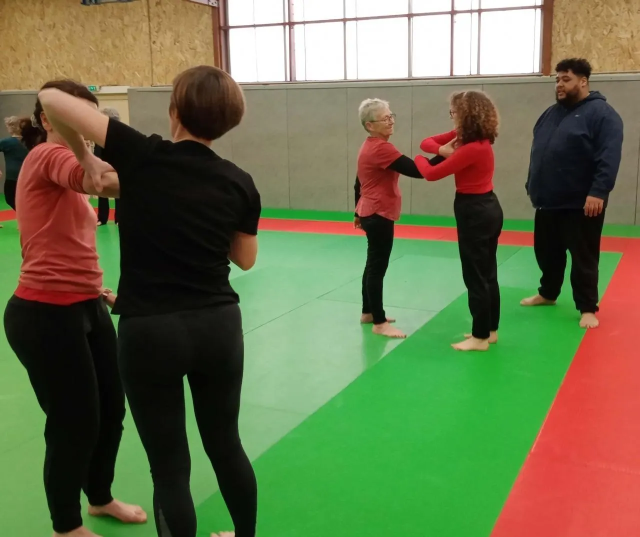 La première séance s’est déroulée lundi 12 janvier, avec dix participantes de tous âges.  J’ai déjà fait du karaté, mon fils pratique le judo, j’ai eu l’information de cette manière. Ici on nous donne les clés pour réagir en cas d’agressionÂ