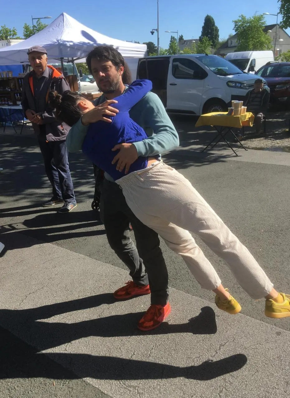 Les Bartholoméens ont eu la surprise de découvrir ce mardi matin, Jonathan Guichard et Lauren Bolze, deux danseurs évoluant parmi le marché hebdomadaire. Pendant huit minutes, les deux protagonistes se sont déplacés avec virtuosité et humour dans une gestuelle d’équilibristes, évoquant à la fois le cirque, la danse et le théâtre et éveillant ainsi la curiosité des spectateurs.