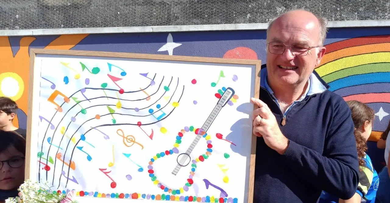 Les enfants ont confectionné un tableau en l’honneur du guitariste. © CO