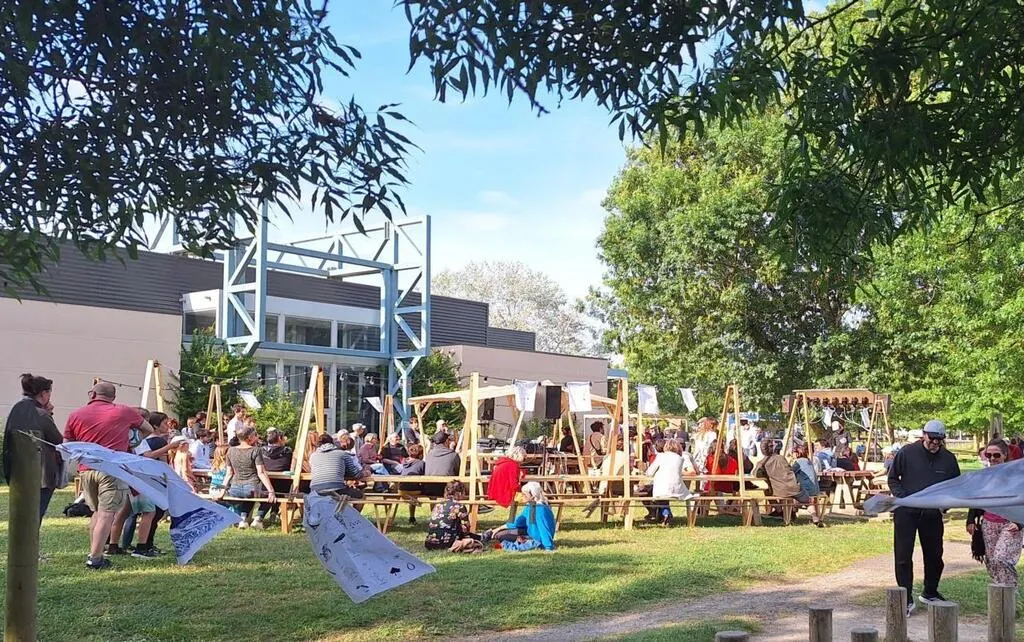 Autour de l’espace central, où était diffusée une radio, la Chorale rafraîchissante avait bandé les yeux du public : « Au début c’était déconcertant, mais petit à petit, je me suis laissé aller », raconte Aurélien, qui n’a hélas pas profité de l’étrange Myxophone, lequel prépare un cocktail à base de notes de musique. Les arts visuels étaient aussi représentés par Marie Lefort, l’artiste qui a réalisé le visuel de l’affiche et travaillé avec des élèves à l’Herbarium imaginarius, sorte d’herbier des rives.