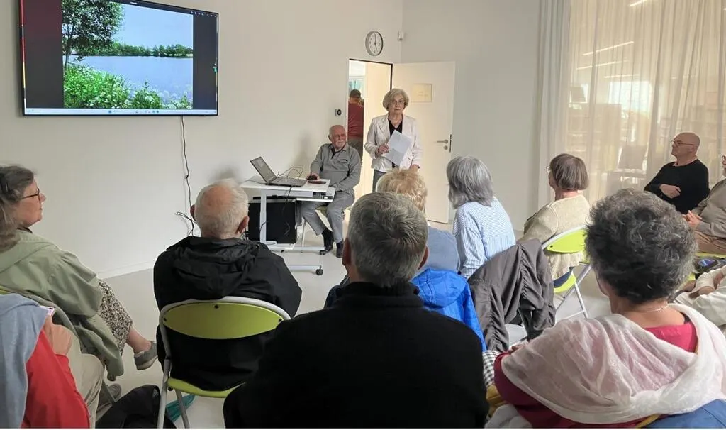 Françoise Capelle, du groupe Beausite, a raconté l’histoire de l’étang d’Arrouët, devant un public passionné d’histoire. © CO