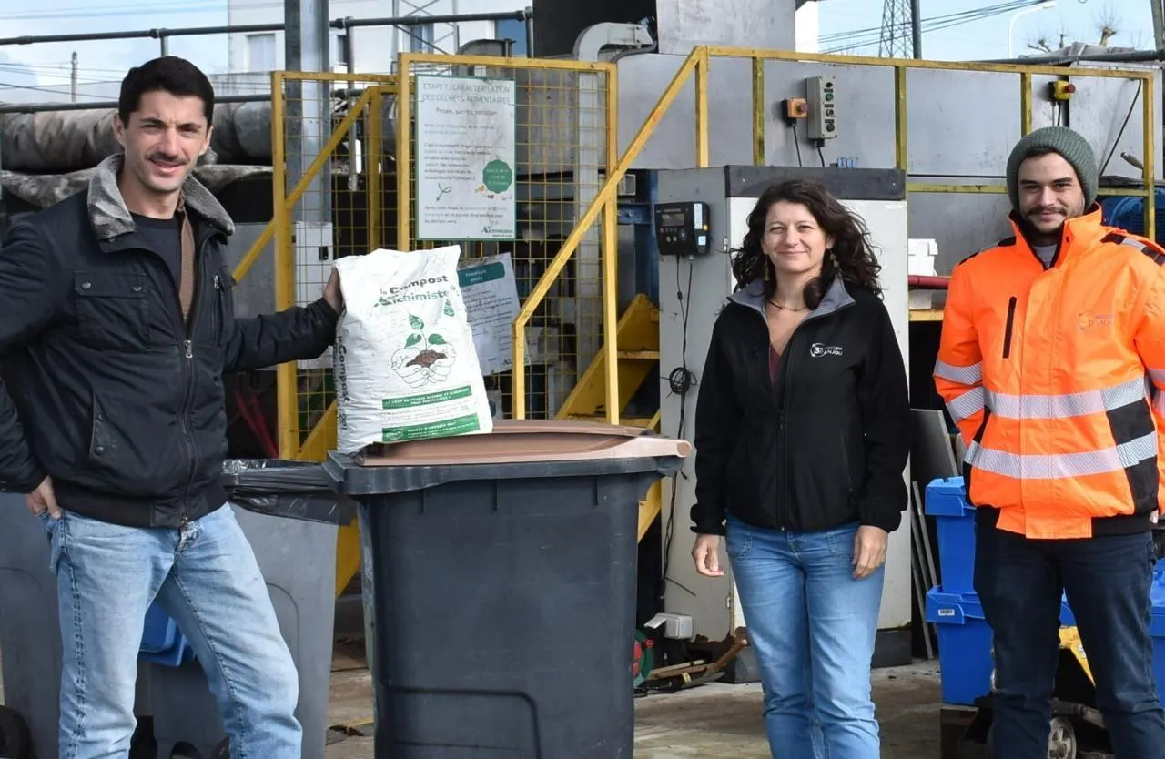 Adrien Lanté, cofondateur des Alchimistes ; Blandine Copie, responsable prévention des déchets, ; Hugo Veidie, animateur de 3RD’Anjou. © CO