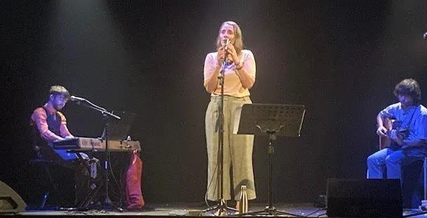 Aurélie de Bauge, Hugo Heyman et Goulven Christien ont retracé en musique et en récit la vie de l’autrice-compositrice Joan Baez. © CO