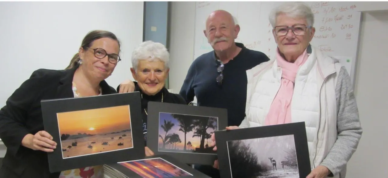 Stéphanie Grâce, devenue membre récemment ; Christiane Masson, trésorière ; Patrick Gilabert, président et Marie-Claude Richomme, membre du club, étaient heureux de recevoir autant de clichés. © Ouest-France