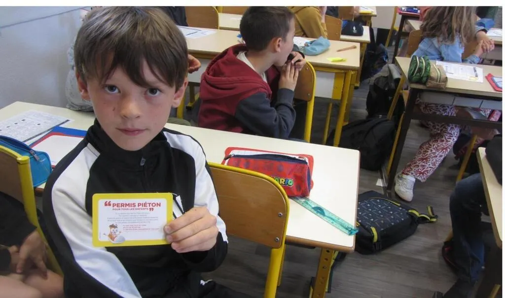 Melvin montre fièrement le permis piéton qu’il a obtenu comme ses camarades de classe. © Ouest-France