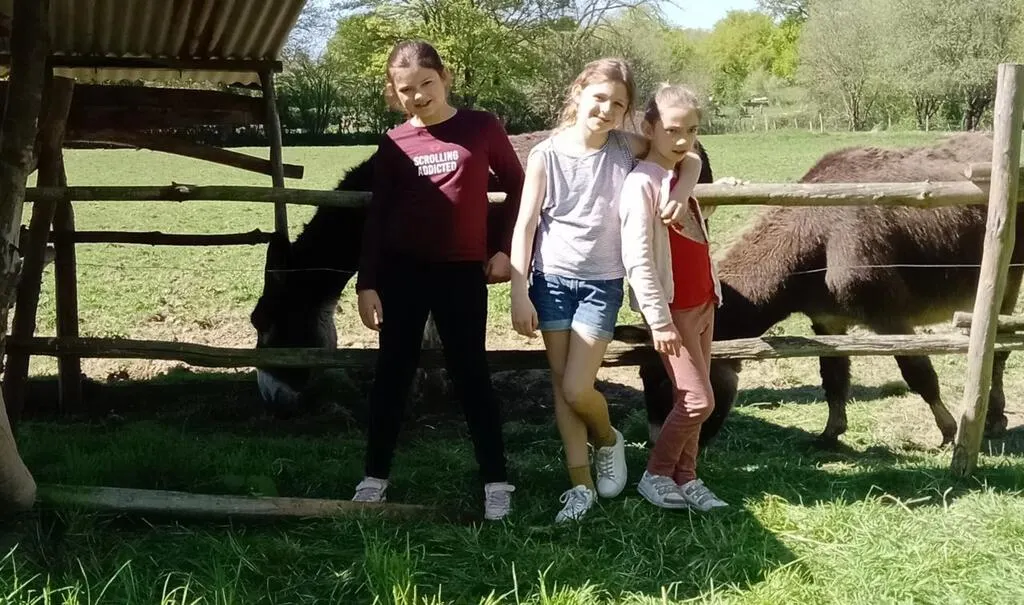 La visite de la ferme s’est révélée enthousiasmante. Les enfants ont caressé le poil soyeux du petit âne gris. Ils ont également rencontré une chèvre noire, qui a brouté dans leurs mains quelques feuilles d’acacia et de frêne.