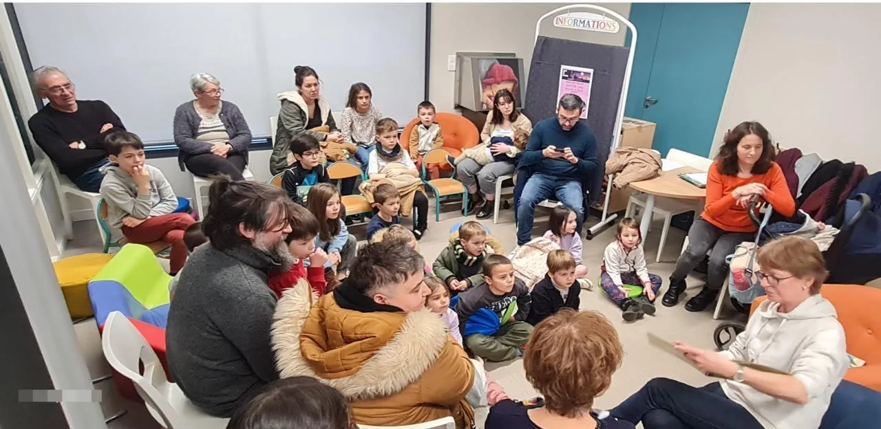 La bibliothèque municipale a drainé beaucoup d’enfants accompagnés de leurs parents, mercredi 21 janvier. Ils ont goûté de belles histoires contées… mais aussi des friandises. © CO
