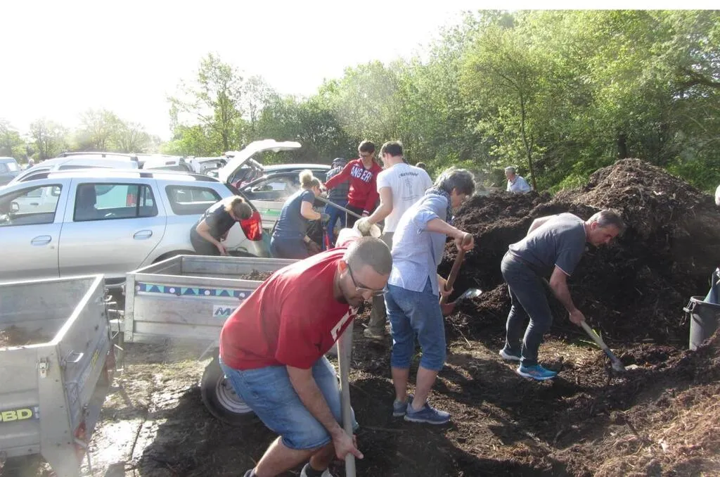 La commune a mis du paillis à la disposition des jardiniers locaux. Lesquels se sont déplacés en nombre pour remplir leurs remorques avec le précieux engrais naturel.