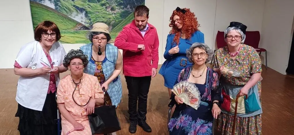 Les Improvistes en costumes pour présenter leur nouvelle pièce intitulée : « Chambre 12, maison de retraite ». © CO