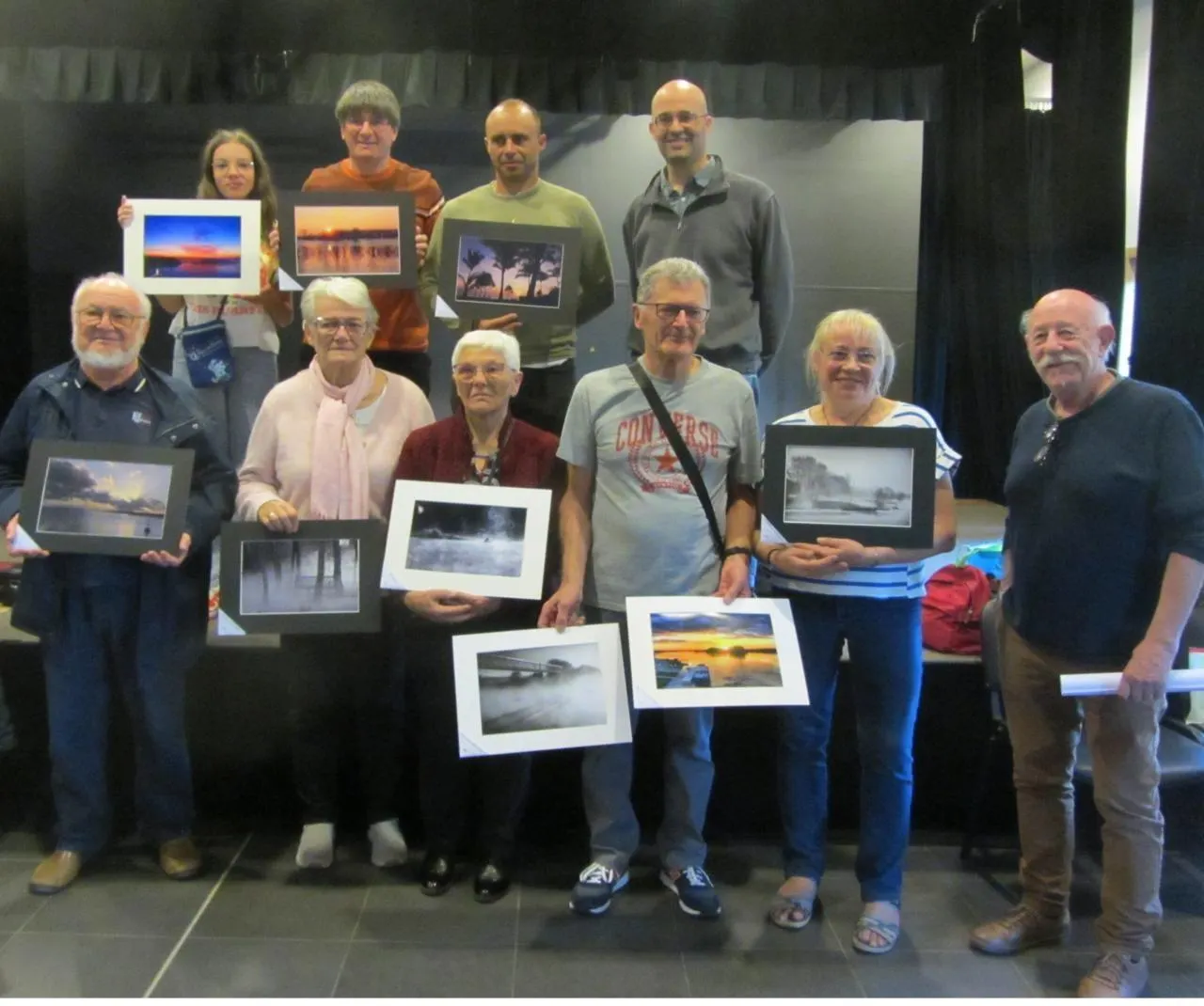Classés premiers, deuxièmes ou troisièmes, ils arborent leurs photos. Patrick Gilabert, président du club photo (à droite) a donné les résultats du concours, Franck Poquin (en haut à droite) a remis le prix de la municipalité à Jean-Claude Richard. © CO