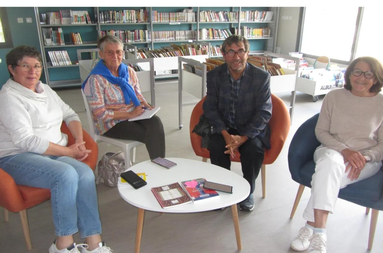Michel Derrac a rencontré les responsables de la bibliothèque ABCD, Anita Legrais et Marie-Hélène Morel-Chevillet coprésidentes (à gauche) et Sylvie Gachot membre (à droite) pour préparer la conférence qu’il donnera le 14 novembre. © CO