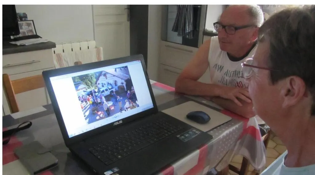 Jeanne Lardeux, la secrétaire, et Jean-Claude Acabon, le président de l’association, visionnent les photos prises lors du voyage d’une semaine en Haute-Savoie. © Ouest-France