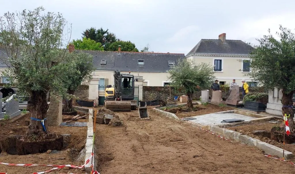 L’entreprise Godet TP de Valanjou a entamé, vendredi, les travaux de plantations dans l’ancien cimetière. © Ouest-France