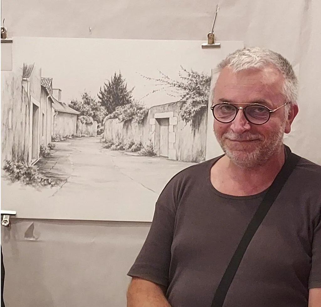 Le peintre niortais Tony Jandard a gagné le prix spécial de la commune, en dessinant la rue Saint-Pierre. © Ouest-France