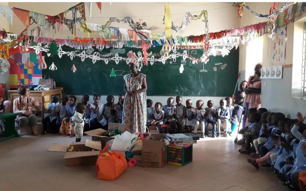 Régine Kurtz (à gauche), au nom de l’association, visite régulièrement le village de Peycouck Serere au Sénégal, comme ici à l’école du village lors d’une distribution de fournitures. Ces visites permettent d’identifier, sur place, les besoins nouveaux les plus urgents. © Ouest-France