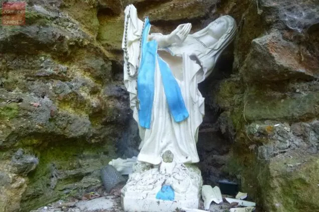 Sainte-Gemmes-d'Andigné. La Vierge de la Grotte de l'Homme vandalisée
