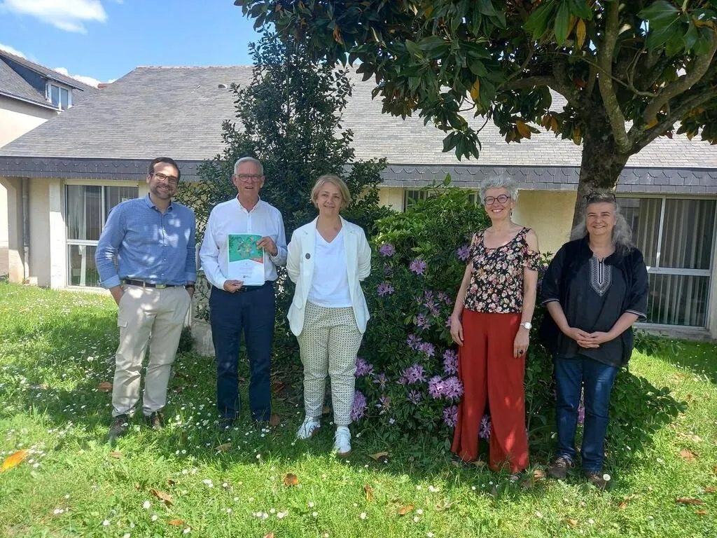 Mickaël Crémont, directeur du village Pierre-Rabhi ; Dominique Bréjeon, maire ; Isabelle Raimbault, première adjointe ; Aline Villière, chargée de mission citoyenneté ; et Céline Baudet, herbaliste, invitent les Bartholoméens aux ateliers et animations de la fête de la Nature. © Ouest-France