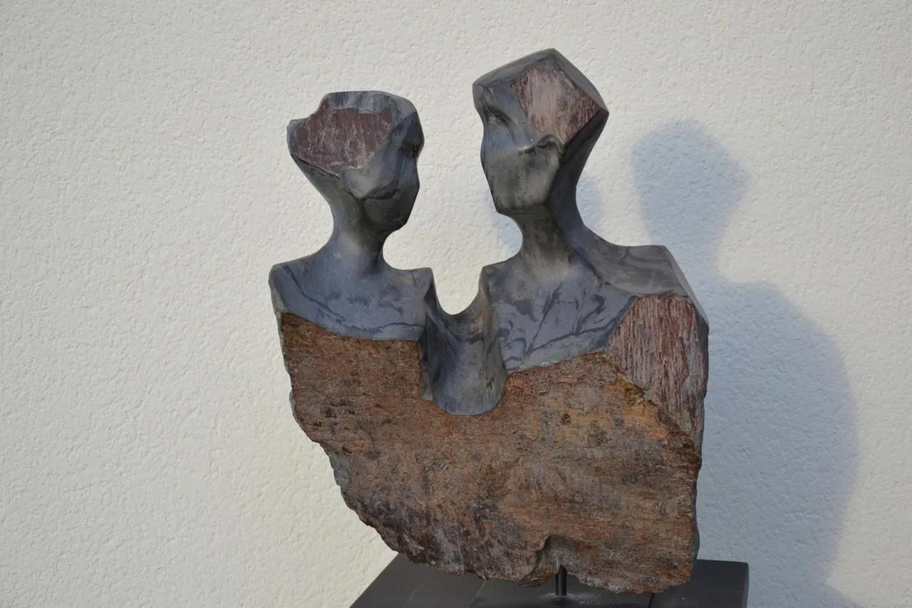Pour Paul Billard, la sculpture a été son premier hobby avant l’aquarelle et le pastel : « Retraité en 2011, j’ai repris le modelage et la poterie Raku. En 2014, j’ai fait la connaissance de Claude Bertrand, sculpteur sur marbre, chez qui j’ai réalisé trois stages, ce qui m’a amené à travailler chez moi le schiste bleu d’Abbaretz. C’est un matériau assez difficile à travailler par sa fragilité mais d’une belle couleur gris-bleu dont le poli soutient parfois la comparaison avec les matériaux nobles comme le marbre. »