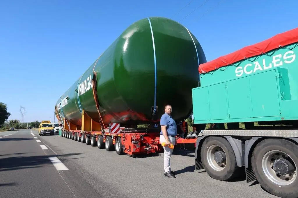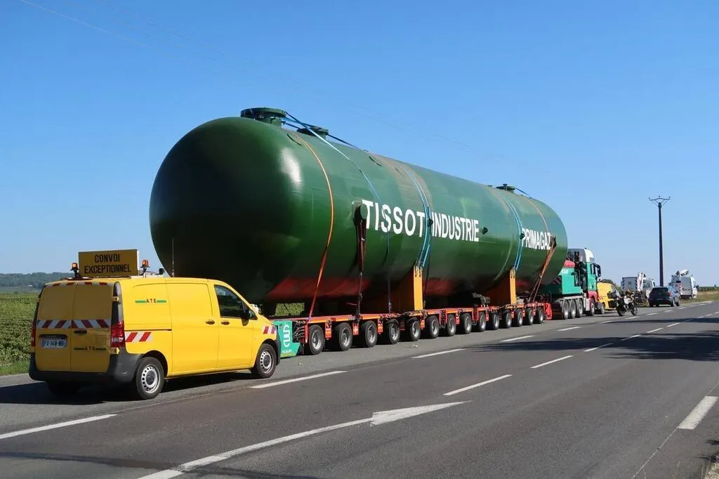 Un convoi exceptionnel hors norme s’est fait remarquer ce vendredi 24 septembre sur les routes du Saumurois. Il s’agit d’un attelage qu’on n’a pas l’habitude de voir circuler tous les jours : une cuve à gaz géante juchée sur une remorque XXL tractée par un camion surpuissant.