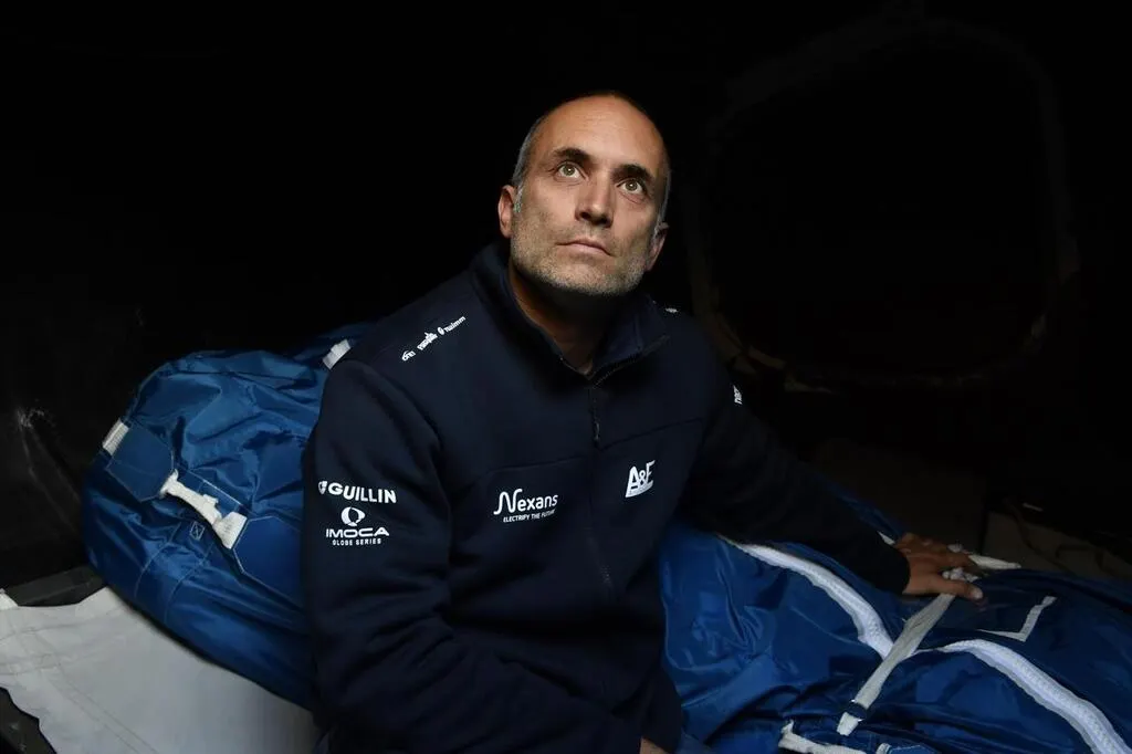 Fabrice Amedeo a vécu un véritable calvaire lors de sa dernière course, voyant même son bateau couler. À quelle course participait-il ? Archives Thomas Brégardis/Ouest-France