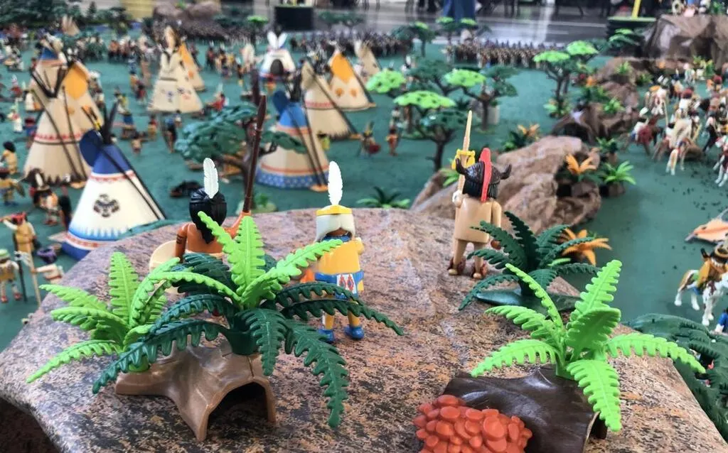 Marcé, le 23 octobre 2024. La scène des Amérindiens est l’œuvre d’Hervé Harreau, président de l’association des Histoires et des gosses dédiée aux Playmobil®. © CO